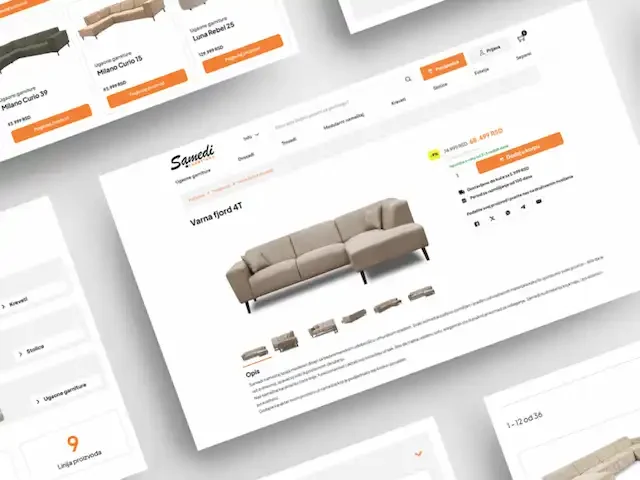Samedi je webshop sa nameštajem, sa preglednim prikazom proizvoda i jednostavnom navigacijom.